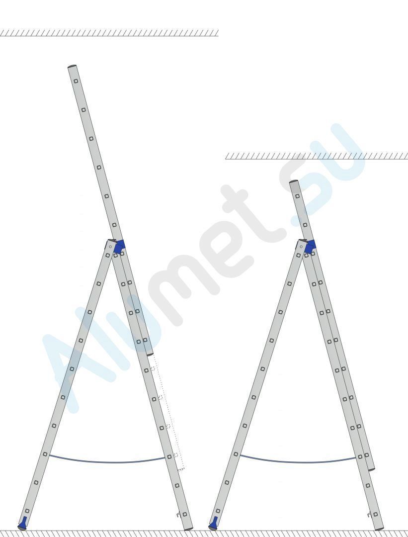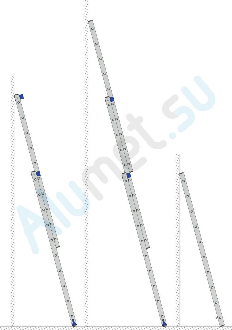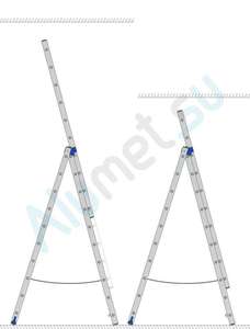 Трехсекционная алюминиевая универсальная лестница 5313 имеет телескопическую систему перемещения секции. В сложенном виде имеет длину 3.66 м. При использовании в качестве стремянки длина составляет 6.18 м, а в полностью разложенном виде – 8.7 м. Может применяться в качестве приставной лестницы для обслуживания фасадов, отдельно стоящих конструкций. Также используется в качестве стремянки для проведения высотных работ. Система раскладки простая и надежная, с фиксацией в выбранном положении.